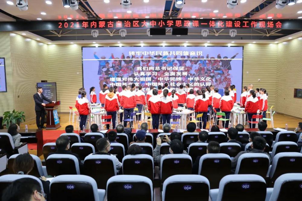2021年3月17日,內(nèi)蒙古自治區(qū)黨委宣傳部、高校工委、教育廳在呼和浩特市聯(lián)合召開(kāi)我區(qū)大中小學(xué)思政課一體化建設(shè)現(xiàn)場(chǎng)會(huì)。會(huì)議深入貫徹落實(shí)學(xué)校思想政治理論課教師座談會(huì)精神及中央、自治區(qū)關(guān)于思政課改革創(chuàng)新的一系列部署,交流展示各地各校深化思政課改革創(chuàng)新的經(jīng)驗(yàn)做法,以“鑄牢中華民族共同體意識(shí)”為主線構(gòu)建全區(qū)大中小學(xué)思政課一體化建設(shè)新格局。