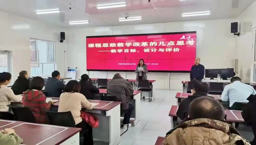 11月25日下午,內(nèi)蒙古能源職業(yè)學(xué)院黨總支與內(nèi)蒙古財(cái)經(jīng)大學(xué)商務(wù)學(xué)院黨委開展共建活動。為提高我院教師課程思政建設(shè)意識和能力,幫助不同學(xué)科專業(yè)教師解決課程思政建設(shè)過程中存在的疑惑和問題,學(xué)院特邀請內(nèi)蒙古財(cái)經(jīng)大學(xué)王雪瑞副教授開展題為《課程思政教學(xué)改革幾點(diǎn)思考——教學(xué)目標(biāo)、設(shè)計(jì)與評價(jià)》的講座,我院全體任課教師于仿真實(shí)訓(xùn)室聆聽講座。