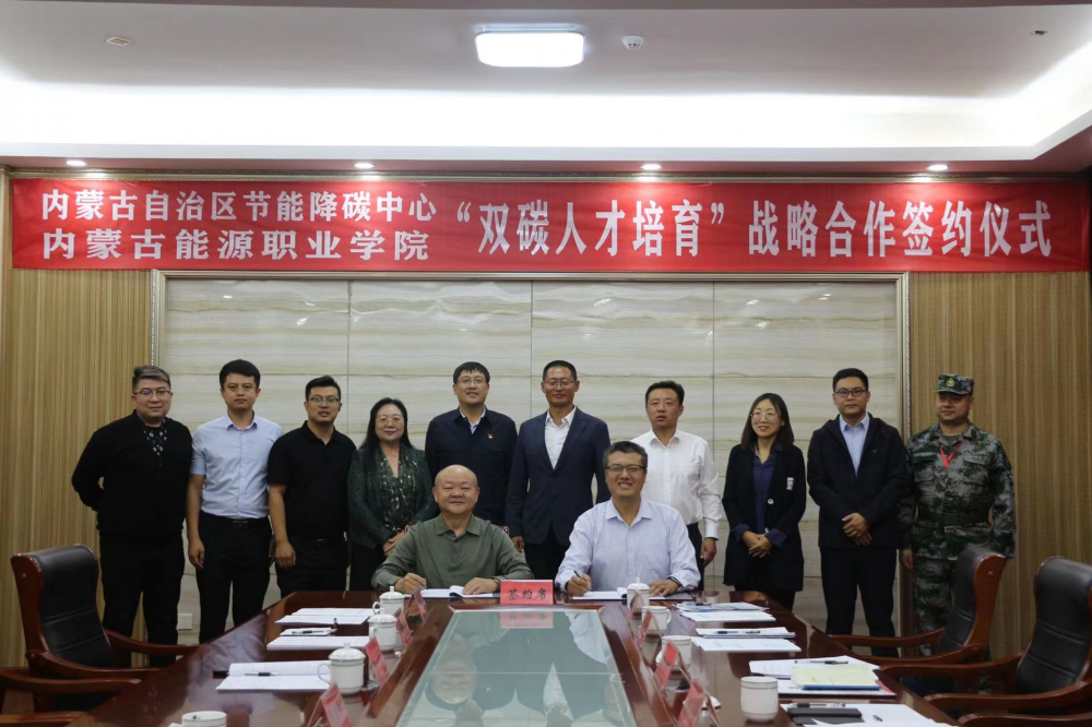 2022年9月23日,內(nèi)蒙古自治區(qū)節(jié)能降碳中心與內(nèi)蒙古能源職業(yè)學(xué)院簽署“雙碳人才培育”戰(zhàn)略合作協(xié)議,助力全區(qū)“雙碳”事業(yè)發(fā)展。