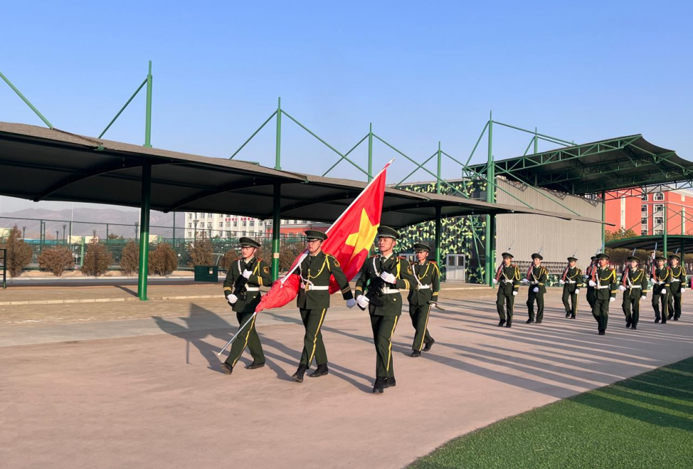 五星紅旗在國旗班的護送下莊嚴(yán)入場,伴著雄壯的義勇軍進行曲,鮮艷的五星紅旗再次冉冉升起,全體師生面向國旗、齊唱國歌,表達(dá)對祖國的無限熱愛和崇高敬意。
