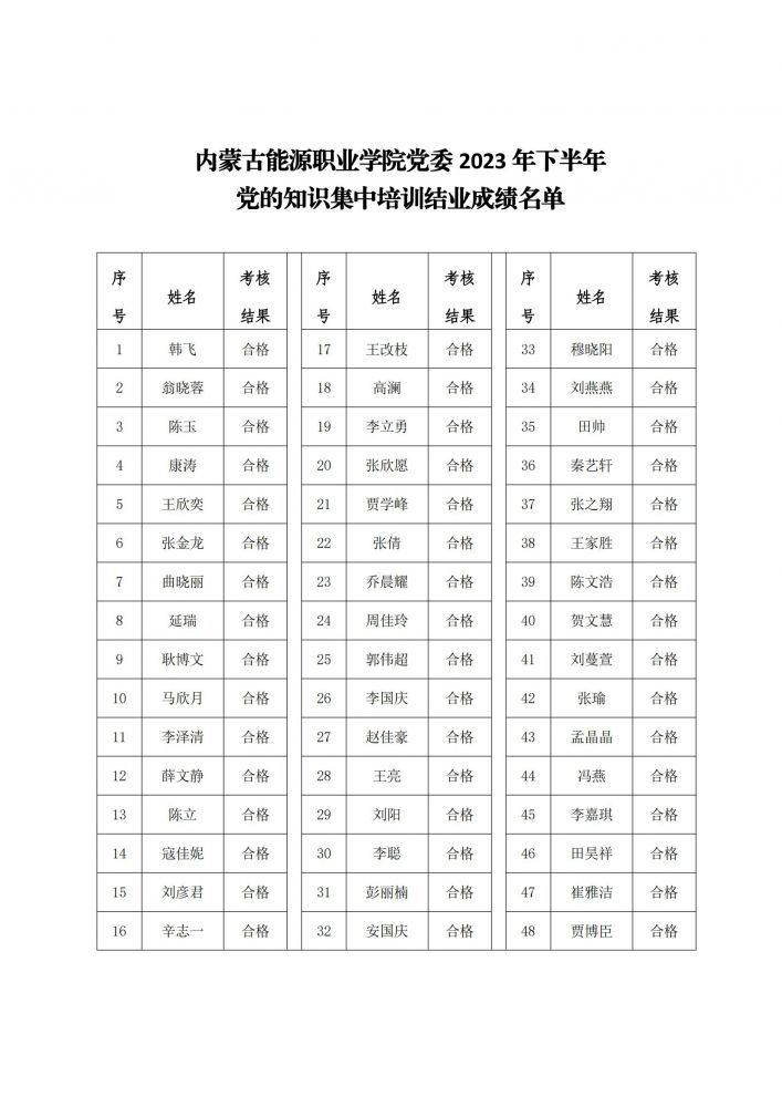 按照學(xué)院黨委入黨積極分子、黨員發(fā)展對(duì)象培訓(xùn)工作安排,2023年下半年黨的知識(shí)集中培訓(xùn)工作已結(jié)束。根據(jù)集中培訓(xùn)結(jié)業(yè)考試成績(jī)等各方面綜合表現(xiàn),現(xiàn)將本期培訓(xùn)班結(jié)業(yè)名單公示如下,詳見附件。