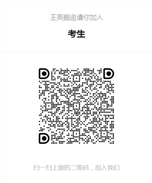 1、微信繳納考務(wù)費(fèi)后下載釘釘,掃描二維碼入群。