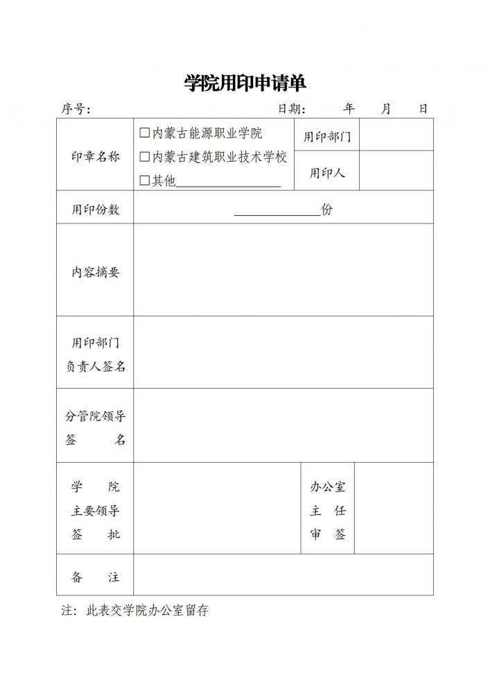 內(nèi)蒙古能源職業(yè)學(xué)院用印申請單