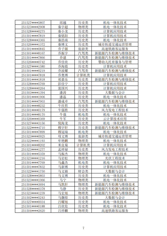 內(nèi)蒙古能源職業(yè)學(xué)院2025年第一次單獨招生考試擬錄取名單