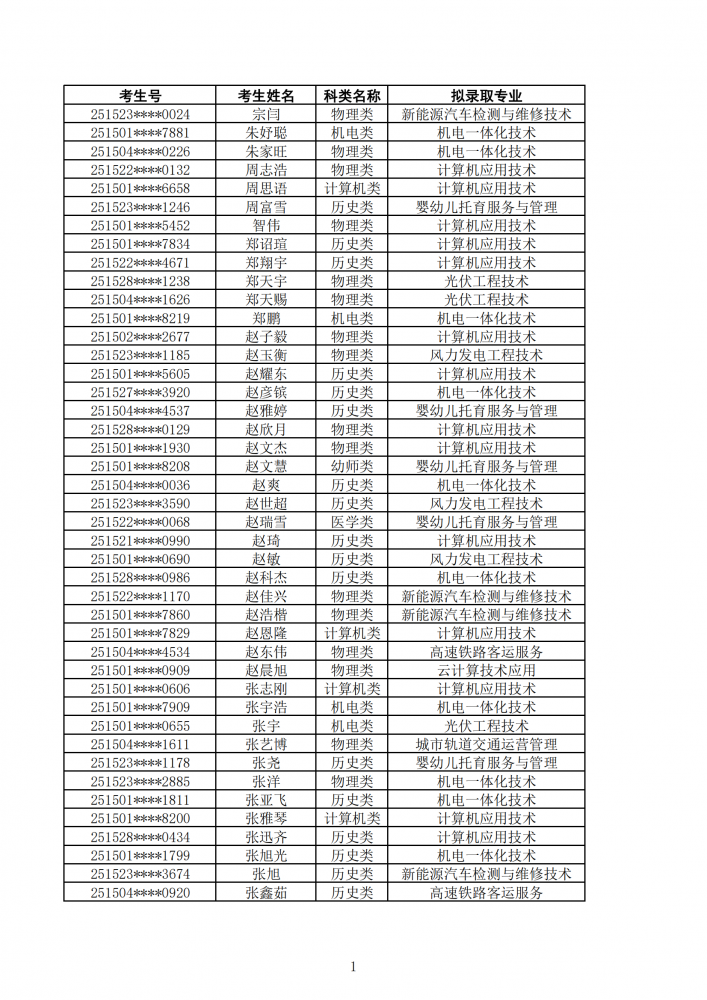 內(nèi)蒙古能源職業(yè)學(xué)院2025年第一次單獨(dú)招生考試擬錄取名單