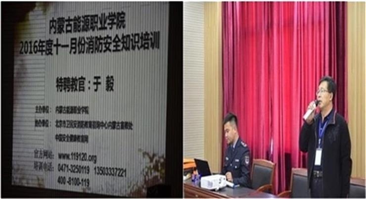 2016年11月30日下午,內(nèi)蒙古能源職業(yè)學(xué)院組織開(kāi)展了下半年的消防安全知識(shí)講座。北京市衛(wèi)民安消防教育咨詢中心內(nèi)蒙古宣教處教官于毅同志主講,內(nèi)蒙古能源職業(yè)學(xué)院副院長(zhǎng)謝飛同志主持,學(xué)生處、各班班主任及各班安全消防員約90多人參加了此次培訓(xùn)。 大會(huì)由學(xué)院副院長(zhǎng)謝飛同志主持,他提到“校園是學(xué)生高度密集場(chǎng)所,消防安全更是校園安全的重中之重,學(xué)習(xí)消防安全知識(shí),提高消防安全意識(shí)是每位師生的共同的...