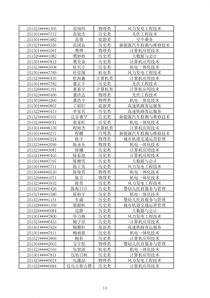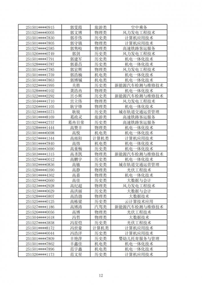 內(nèi)蒙古能源職業(yè)學(xué)院2025年第一次單獨(dú)招生考試擬錄取名單